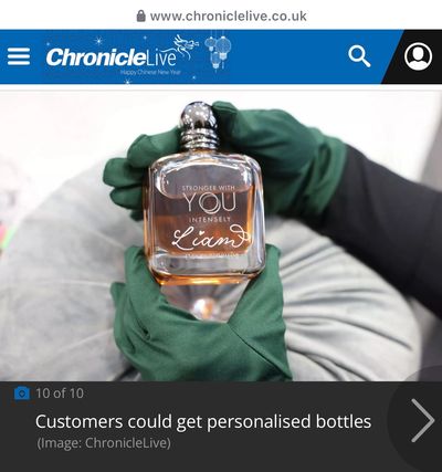 On 7th February 2025, Eldon Square Fragrance shop re - opened with a brand new aesthetic. Lewis Engraving was approached to live hand engrave fragrances on site purchased by customers and for influencers in attendance.